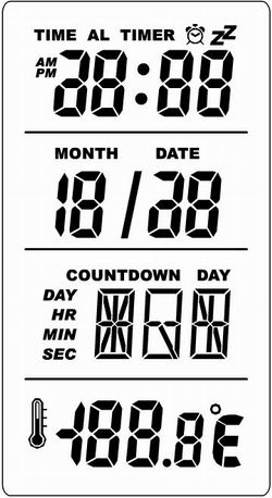 - 刚上电池或复位时,LCD会全部显示2秒左右