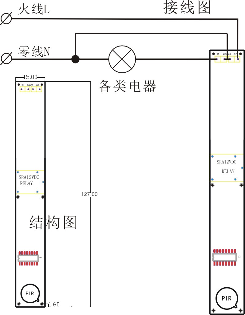 4.多种工作电压模式:交流型220V;直流型:5V-24V 5.带执行控制部分:可直接应用于各类智能感应电器设备