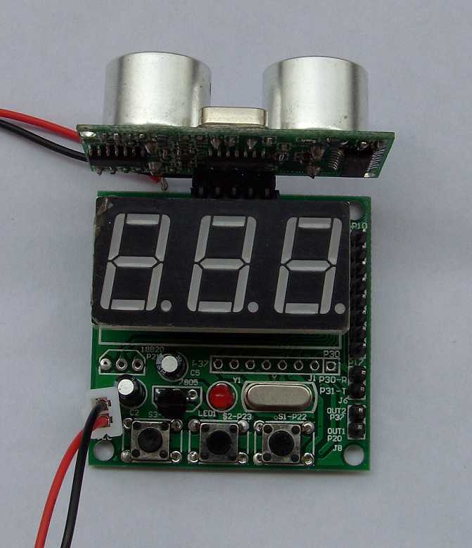 2.在按下S1键,显示出现一个数(比如001),为最小测量极限值,当测量的距离小于这个值的时候,OUT2会输出一个高电平,大概在4.5V左右。这个最小测量极限值可让用户通过按S2增加,S3减小来