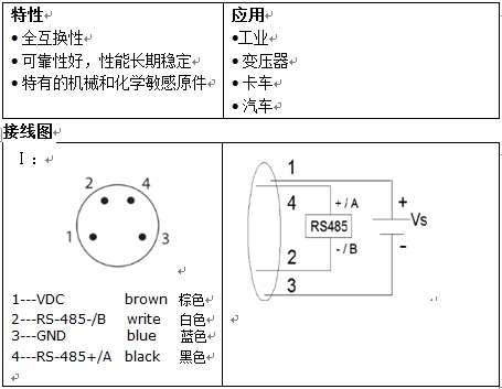 油微水检测传感器专用于工业、变压器、大卡车和汽车等领域涉及到的精确在线油中的水分含量分析检测。油液水分含量传感器的微控制器直接接口可以实现RS485数字信号输出。该系列产品也可根据客户需求提供定制版本。
