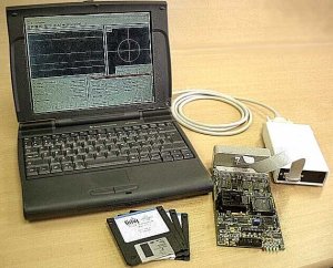 The DIRAC Development Board features the DIRAC CDMA/Spread Spectrum receiver chip (containing an ARM processor and a UART), RAM/ROM for the ARM, and an ADC. This allows full flexibility in demodulation schemes, data rates, despreading technique, tracking loops, synchronization algorithms, acquisition strategy, etc. The DIRAC Development Board provides a serial host interface, that you can connect to any RS-232 terminal or PC. This allows you to set parameters, check parameter settings, download software on the ARM processor, download codes into the despreader of the DIRAC chip, measure Bit Error Rates and other performance measures via a terminal or PC.